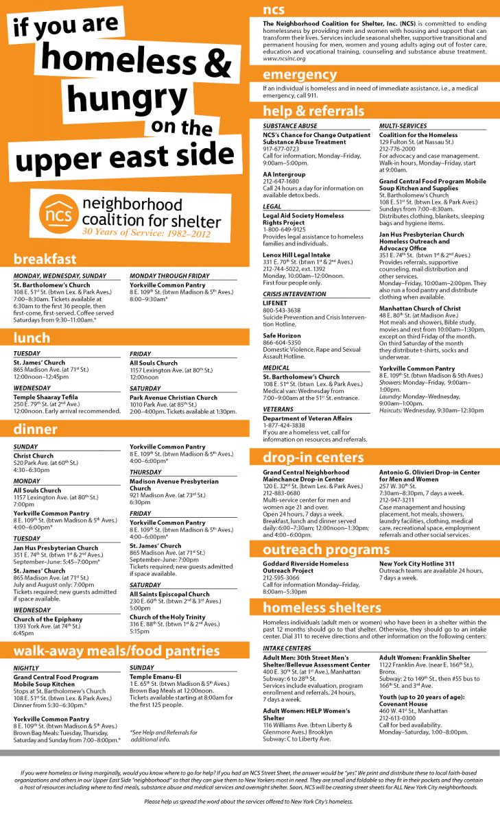 “Neighborhood Coalition for Shelter was founded in 1982 by faith and civic leaders on the Upper East Side who would not be idle as growing numbers of homeless people lived on the streets. Inspired by the belief that homelessness is the responsibility of the entire community, NCS has continued in the tradition of neighbors helping neighbors, providing leadership and professional guidance to the volunteer efforts in our community. We are grateful for the opportunity to work with the Taskforce and to continue in that role,” said Executive Director Ann Shalof, Neighborhood Coalition for Shelter.